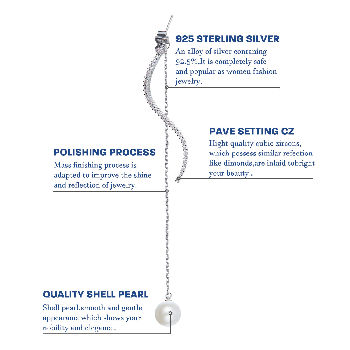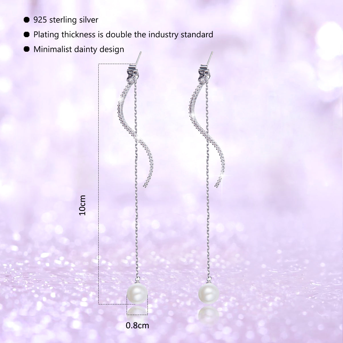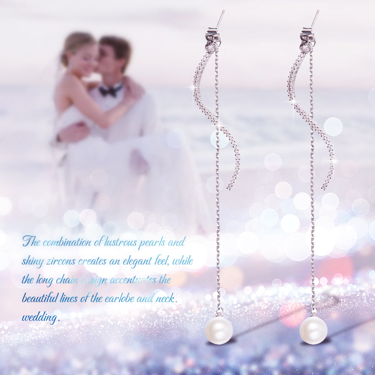 🎁 MATERIAL 🎁 These long earrings are made of 925 sterling silver with platinum plated and high quality pearls, cubic zircons. Nickel free, lead free, cadmium free and hypoallergenic, 100% safe for sensitive skin.
