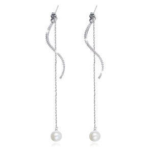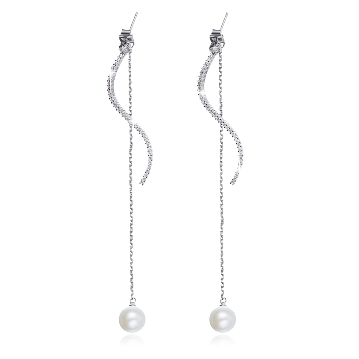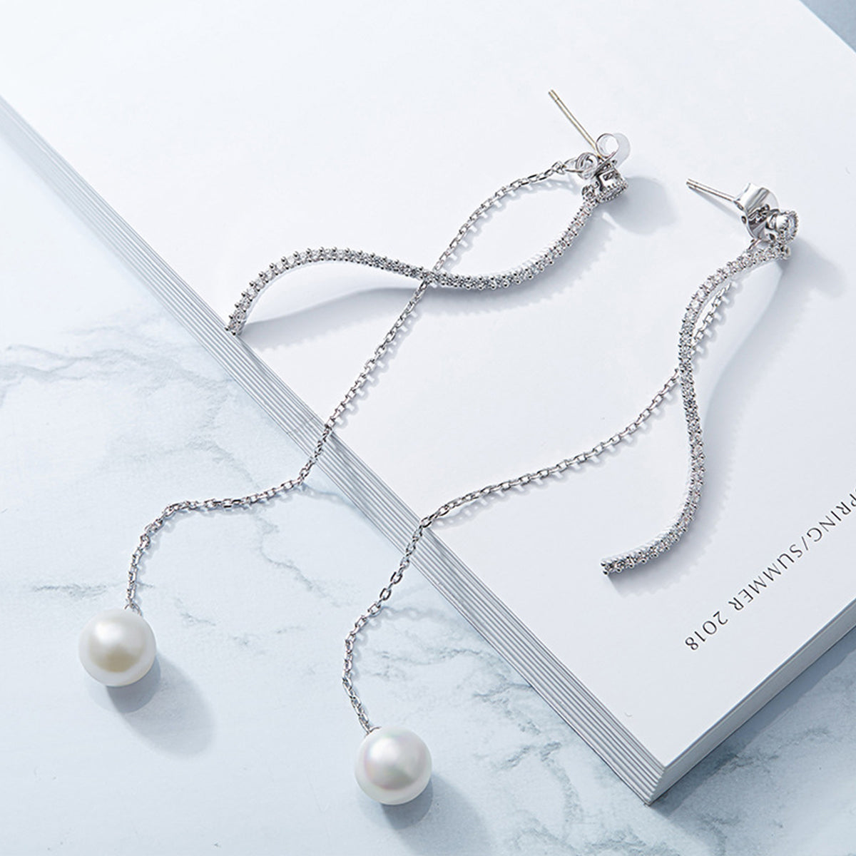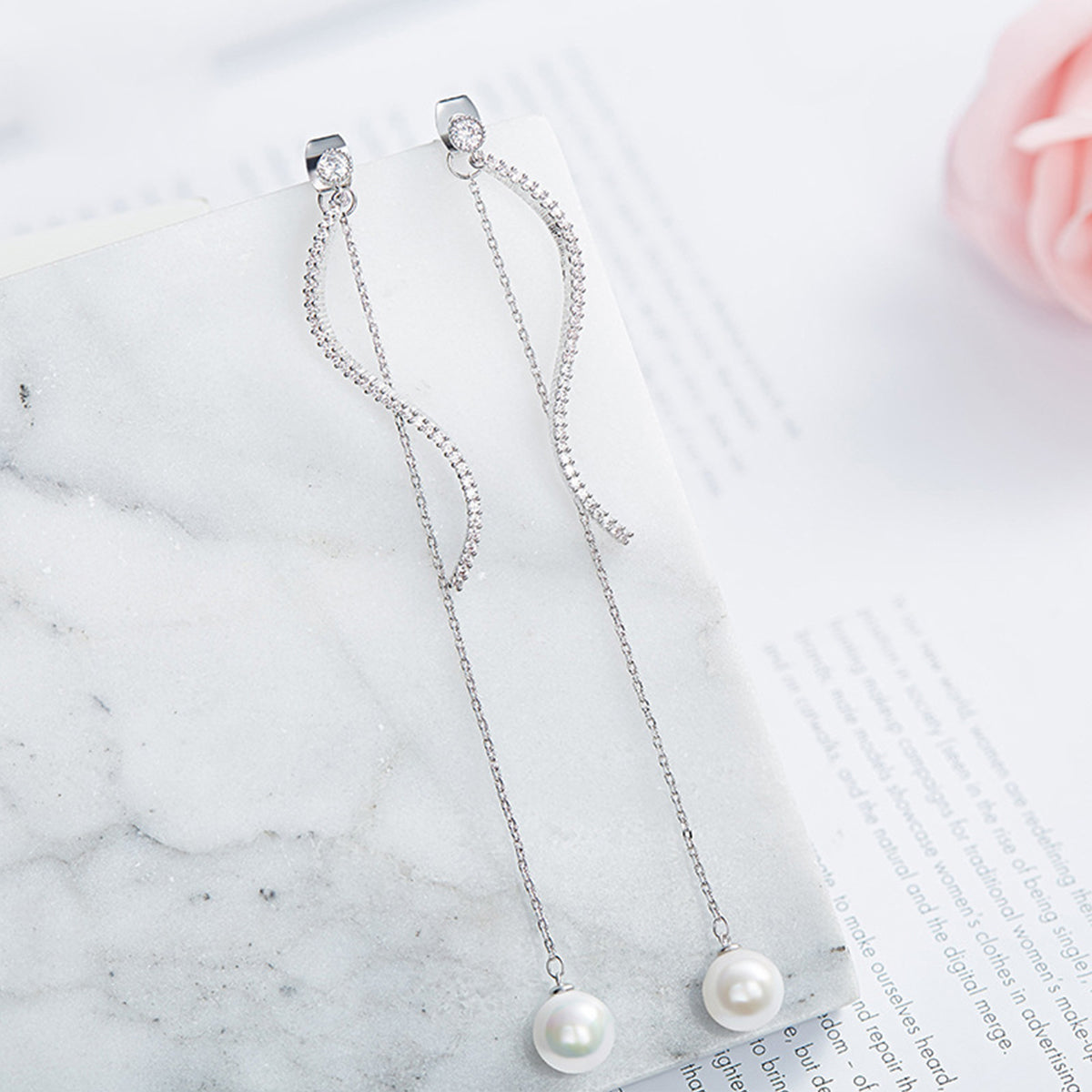 🎁 MATERIAL 🎁 These long earrings are made of 925 sterling silver with platinum plated and high quality pearls, cubic zircons. Nickel free, lead free, cadmium free and hypoallergenic, 100% safe for sensitive skin.