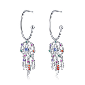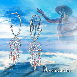 - 1x 925 Sterling Silver Dream Catcher Hoop Earrings
