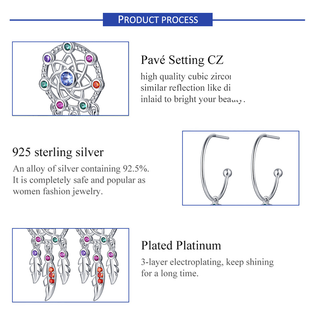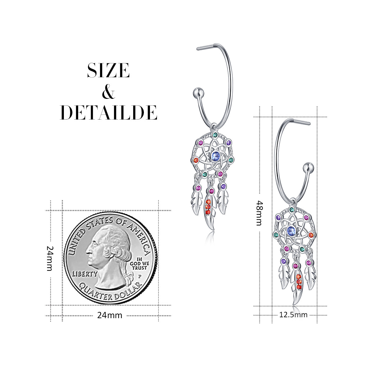 - Material& Size: SIZE:3.3*1.1cm,Weight:3.1g .100% safe for sensitive skin. This Dream Catcher Earrings is made of genuine 925 sterling Silver and twinkling cubic zirconias. Nickel-free, Lead-free, Cadmium-free and Hypoallergenic, skin.