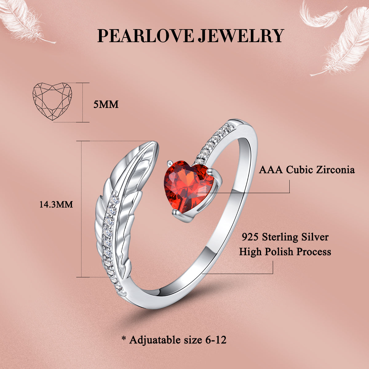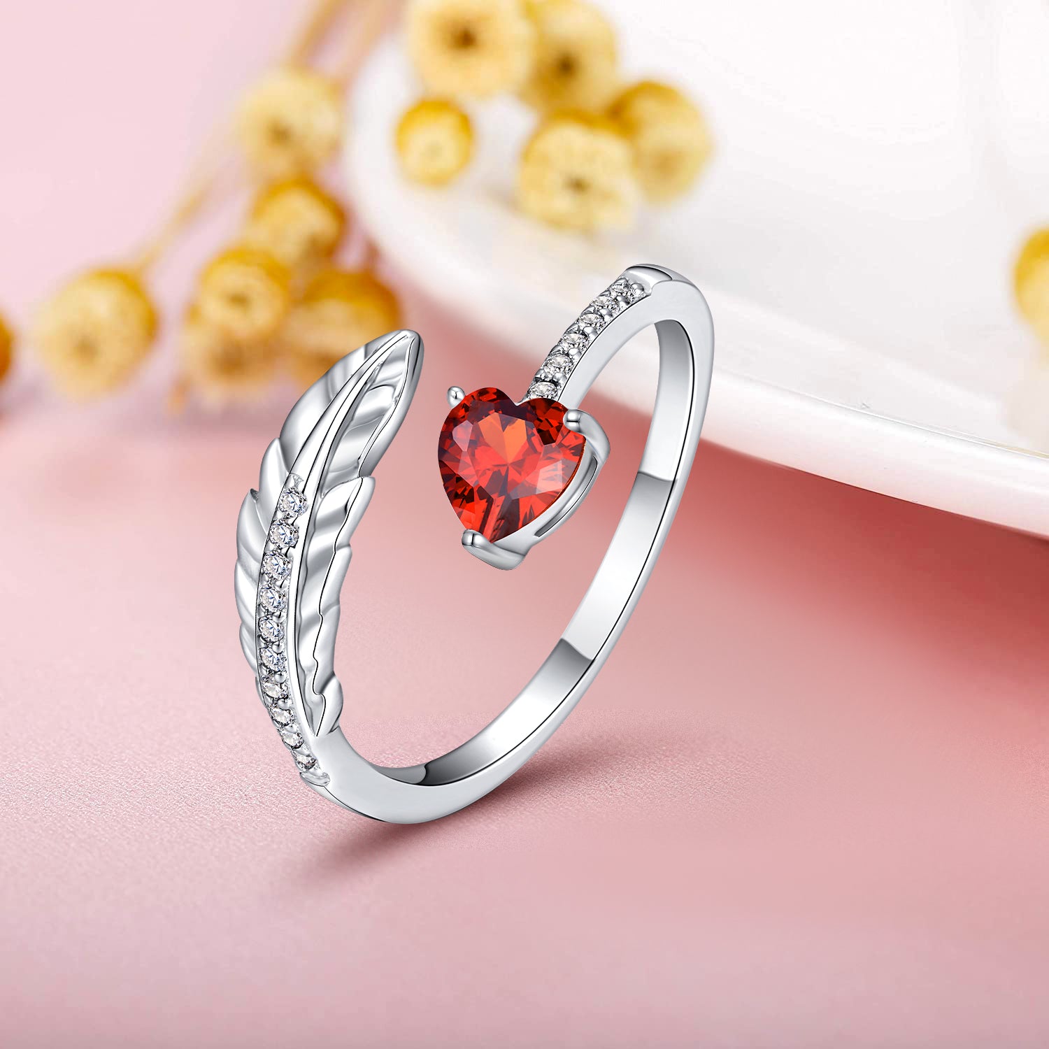 🐦Design Idea :This feather ring is engraved in Heart Stones.Everyone has own Lucky Birthstone. it will bring you healthy, luck and happiness. 12 Birthstone cover everyone's birthday and any anniversary, each month has a special meaning for you and your lover.Feather mean the wings of angels.When birds fly in the sky,they convey the spirit of longing for freedom.