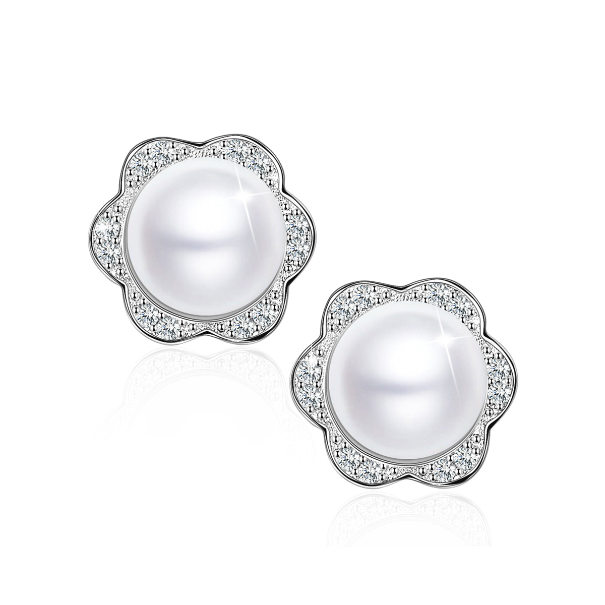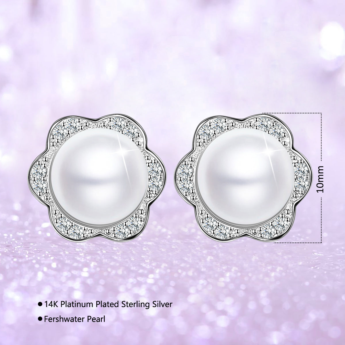 ✿GREAT MATERIAL✿This Elegant Flower Pearl Earrings are crafted from 925 sterling silver and high quality freshwater pearl, CZ Zircon.