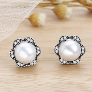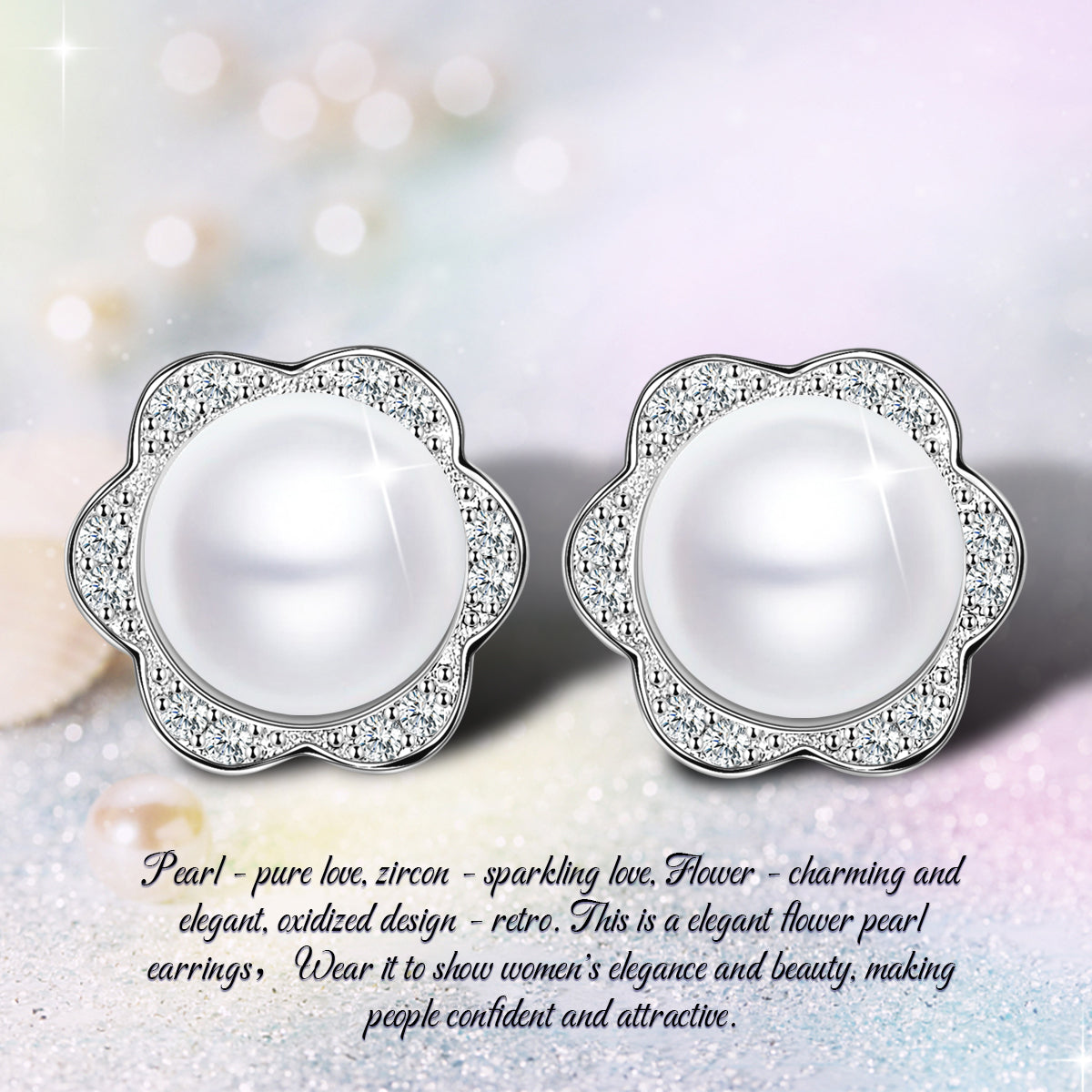 ✿DESIGN INSPIRATION✿ Pearl - pure love, zircon - sparkling love, Flower - charming and elegant, oxidized design - retro. This is a elegant flower pearl earrings,Wear it to show women's elegance and beauty, making people confident and attractive.