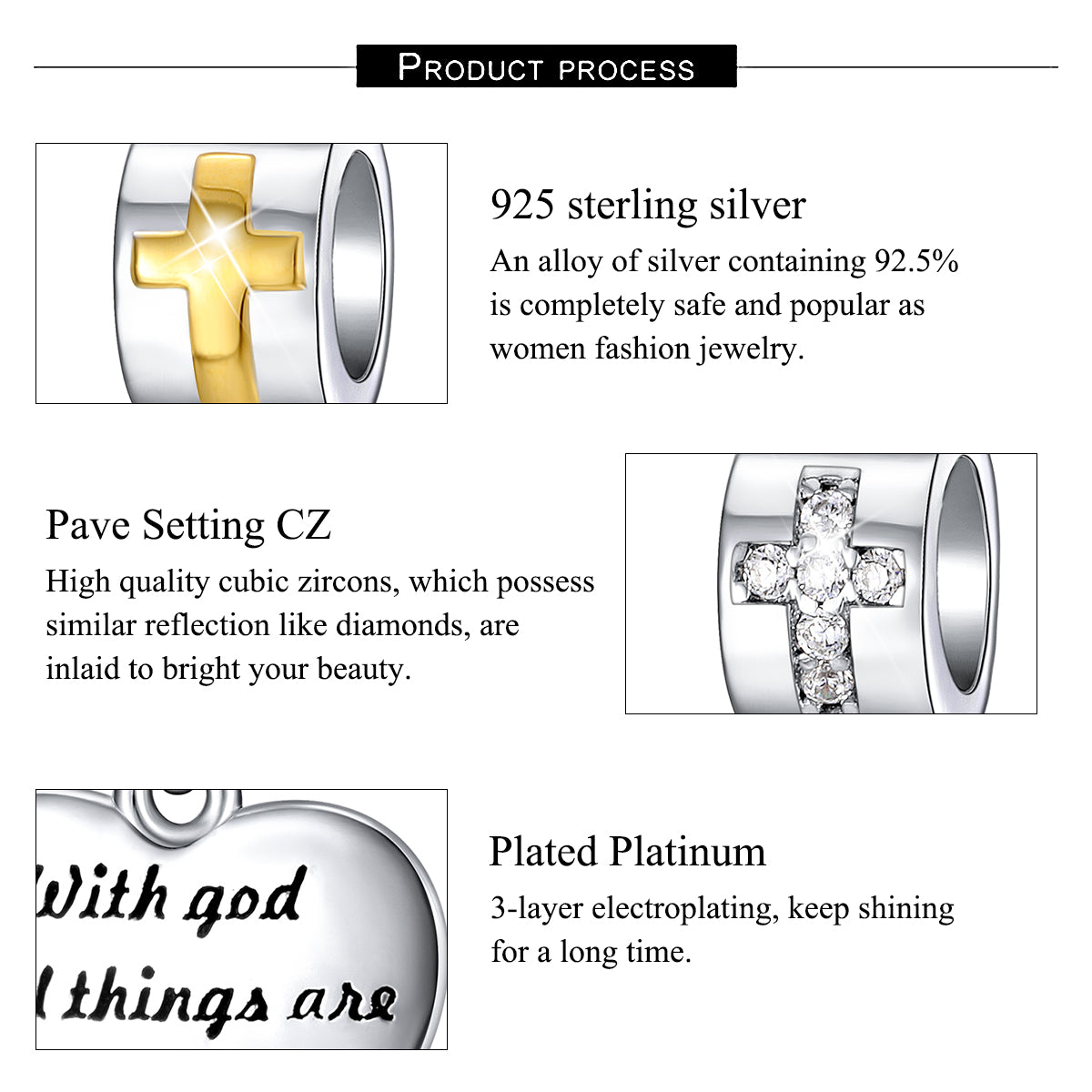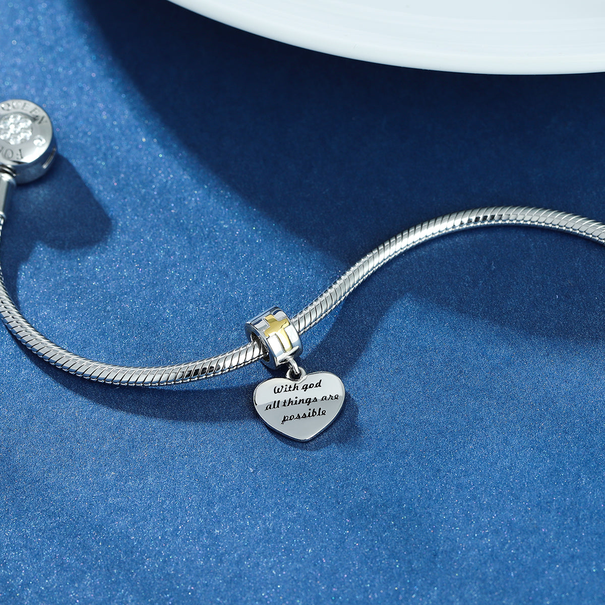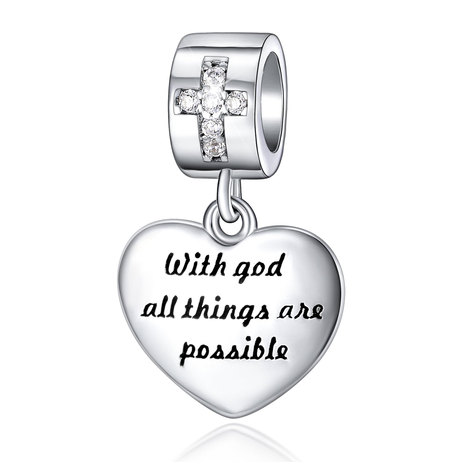 Forever Queen Breloque en forme de croix avec inscription « All Things are Possible » pour bracelets européens Pandora