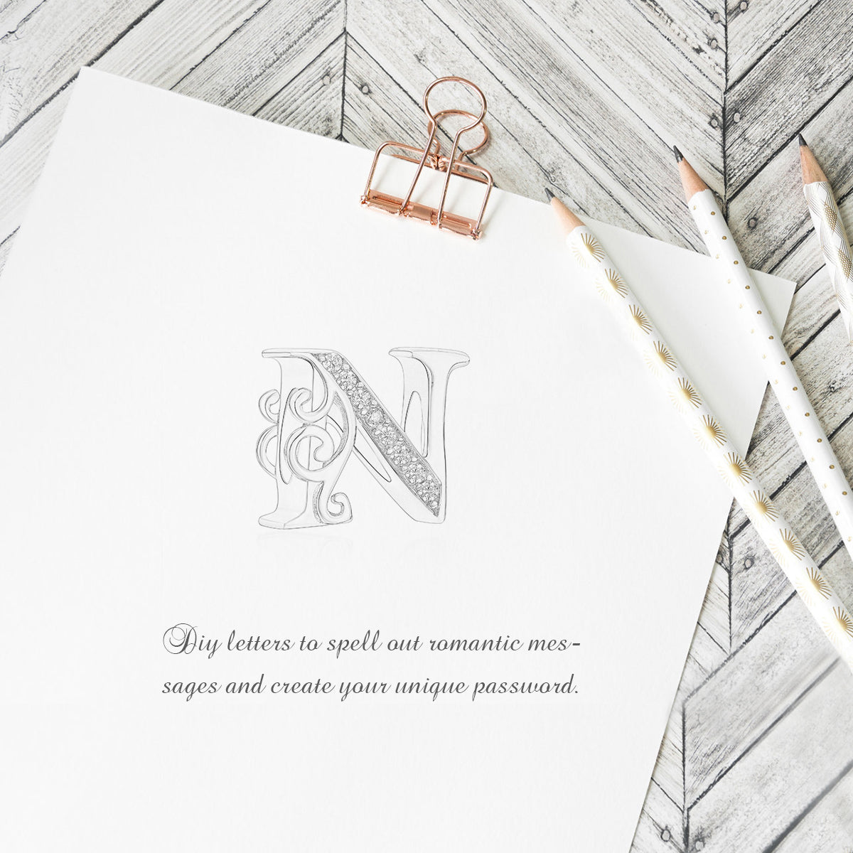 MATERIALEN & METINGEN: Deze letter bedeltje is gemaakt van 925 sterling zilver met platina plated en inlays met zirkonia. Nikkelvrij, loodvrij, cadmiumvrij en hypoallergeen, 100% veilig voor de gevoelige huid.