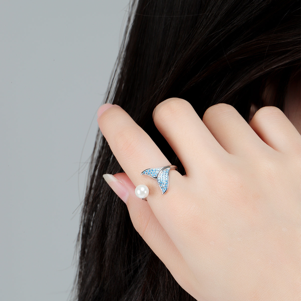 ஐ DESIGN INSPIRATION ஐ The fishtail ring is inspired by the fairy tale The Daughter of the Sea, the blue zircons decorate the mermaid tail with pure pearl, which exudes a charming sea flavor. It is the symbol of elegance and charm.