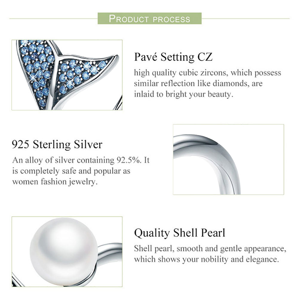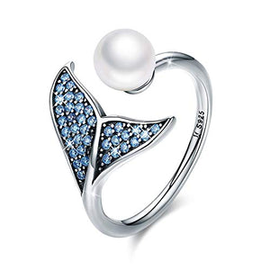 ஐ MATERIALS AND MEASUREMENTS ஐ The Mermaid Tail ring for women is made of 925 sterling silver with sparkling diamond-cut cubic zirconia and pearl shell. It will not change color or darken. Tarnish resistant, nickel free. Dimension: 0.55 * 0.35 * 0.07 inches (14mm*9mm*2mm), Weight: 2.25g.