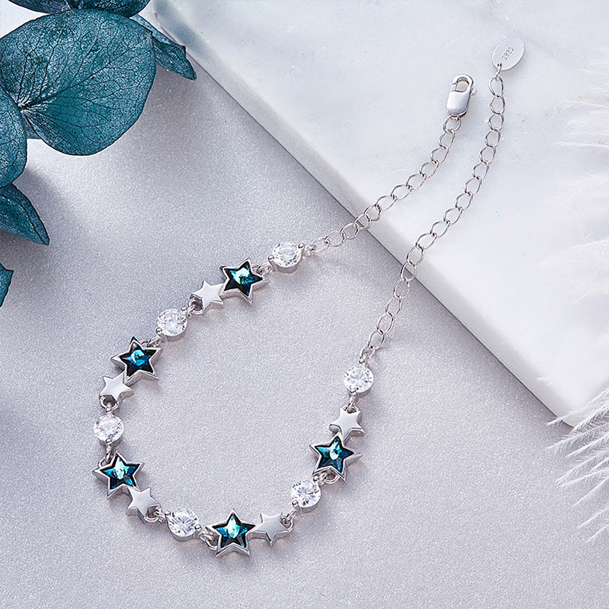 ♥Design Inspiration♥ Add subtle detail to your look with this lucky star bracelet. The delicate chain is embellished with star crystals, symbolizing free and love. The bracelet is finished with a lobster claw clasps to ensure the perfect fit.