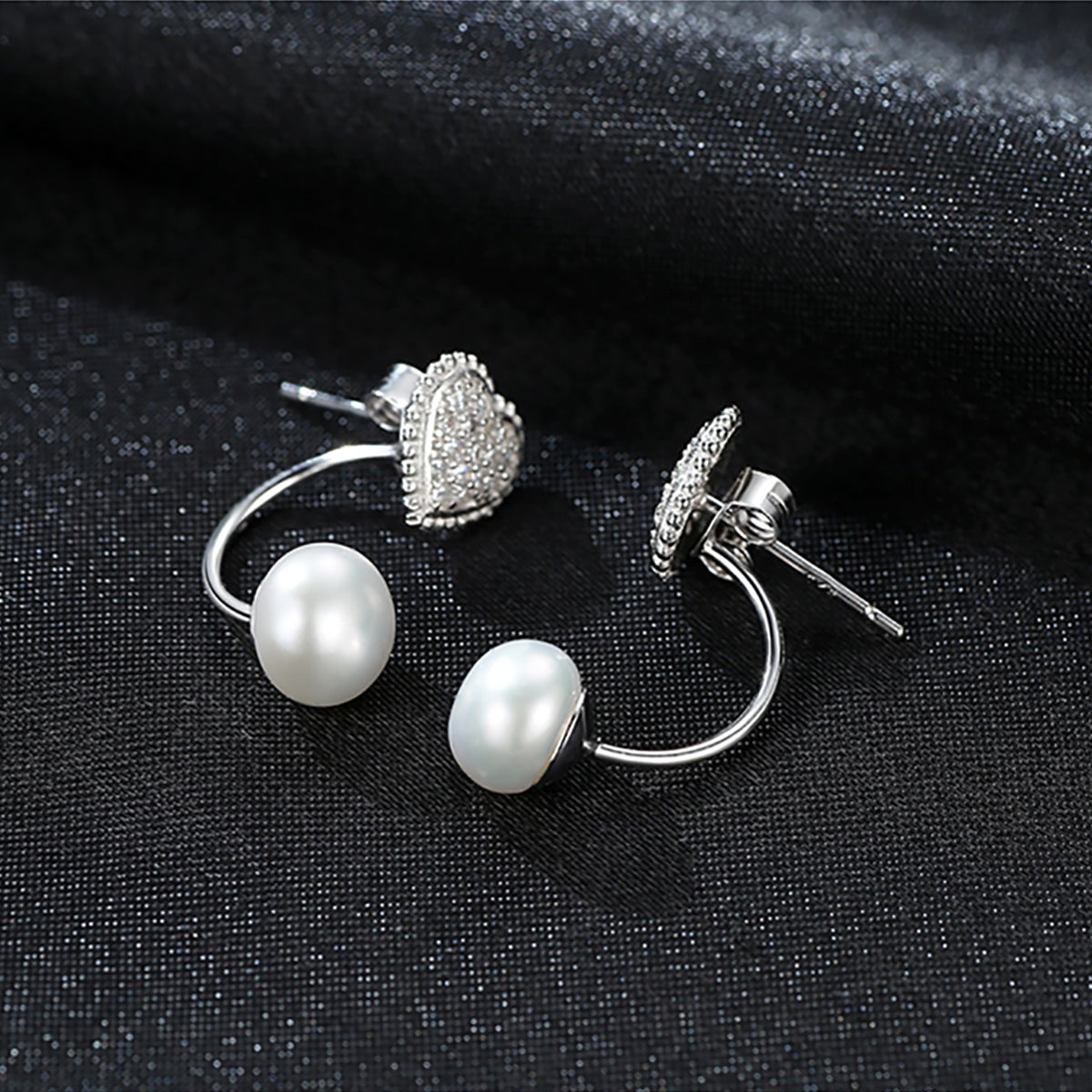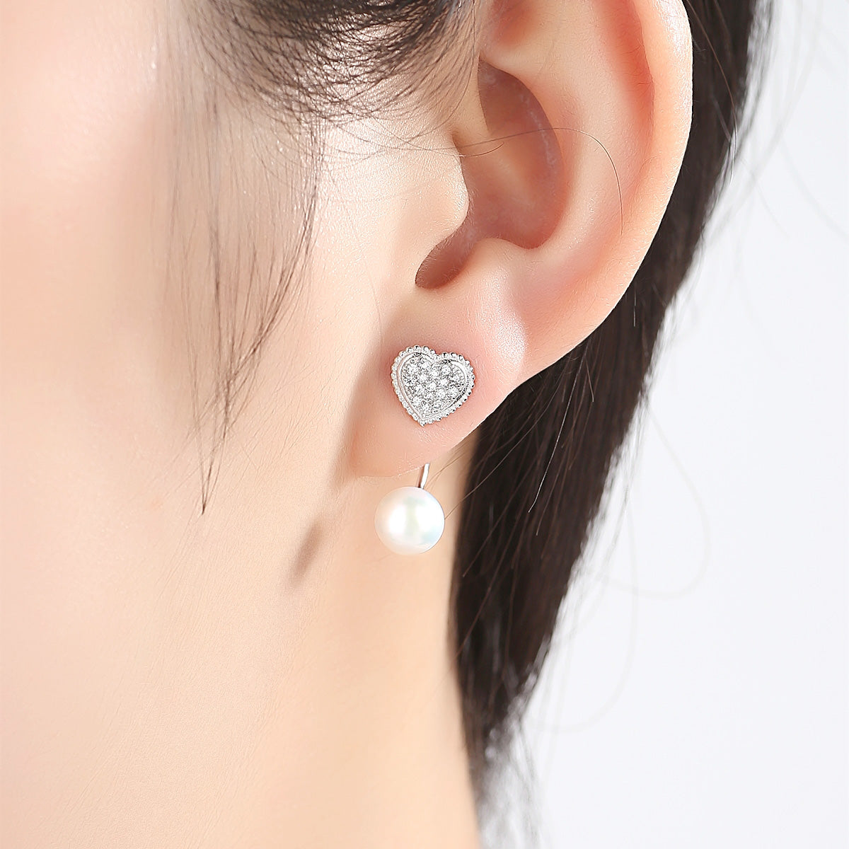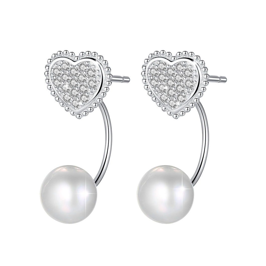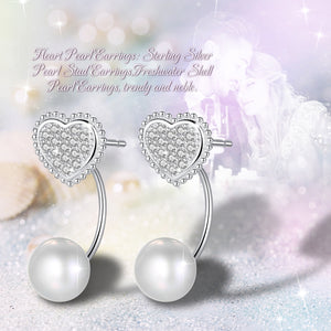 ❤ ISPIRAZIONE DI DESIGN ❤ Questo orecchini presenta un design a forma di cuore con una perla brillante. Il cuore d'argento è intarsiato con zirconi scintillanti, che è combinato con perle per creare un'atmosfera elegante ed elegante. Indossa questi orecchini e diventa la stella più luminosa della folla.