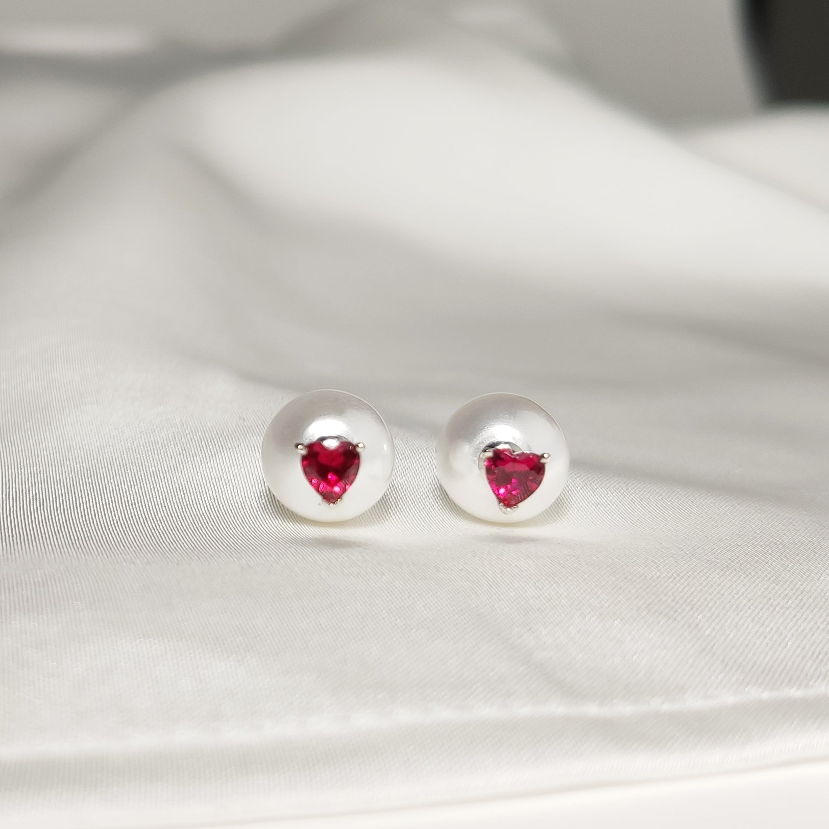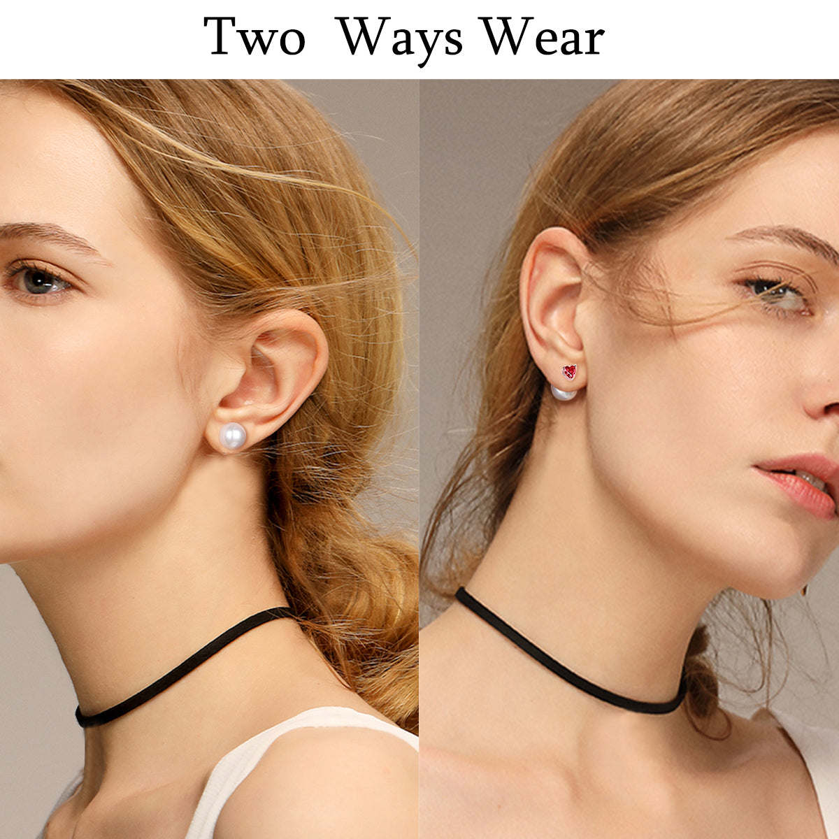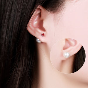 Materiale: questi orecchini a forma di cuore sono realizzati in argento sterling 925, perle di alta qualità e zirconi cubici rossi. Senza nichel, piombo, cadmio e ipoallergenico, sicuro al 100% per le pelli sensibili.