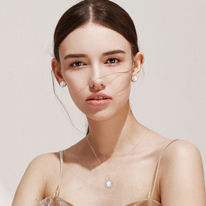 MATERIAL: This pearl earrings necklace set are made of 925 sterling silver, pearl and inlaid with cubic zirconia.