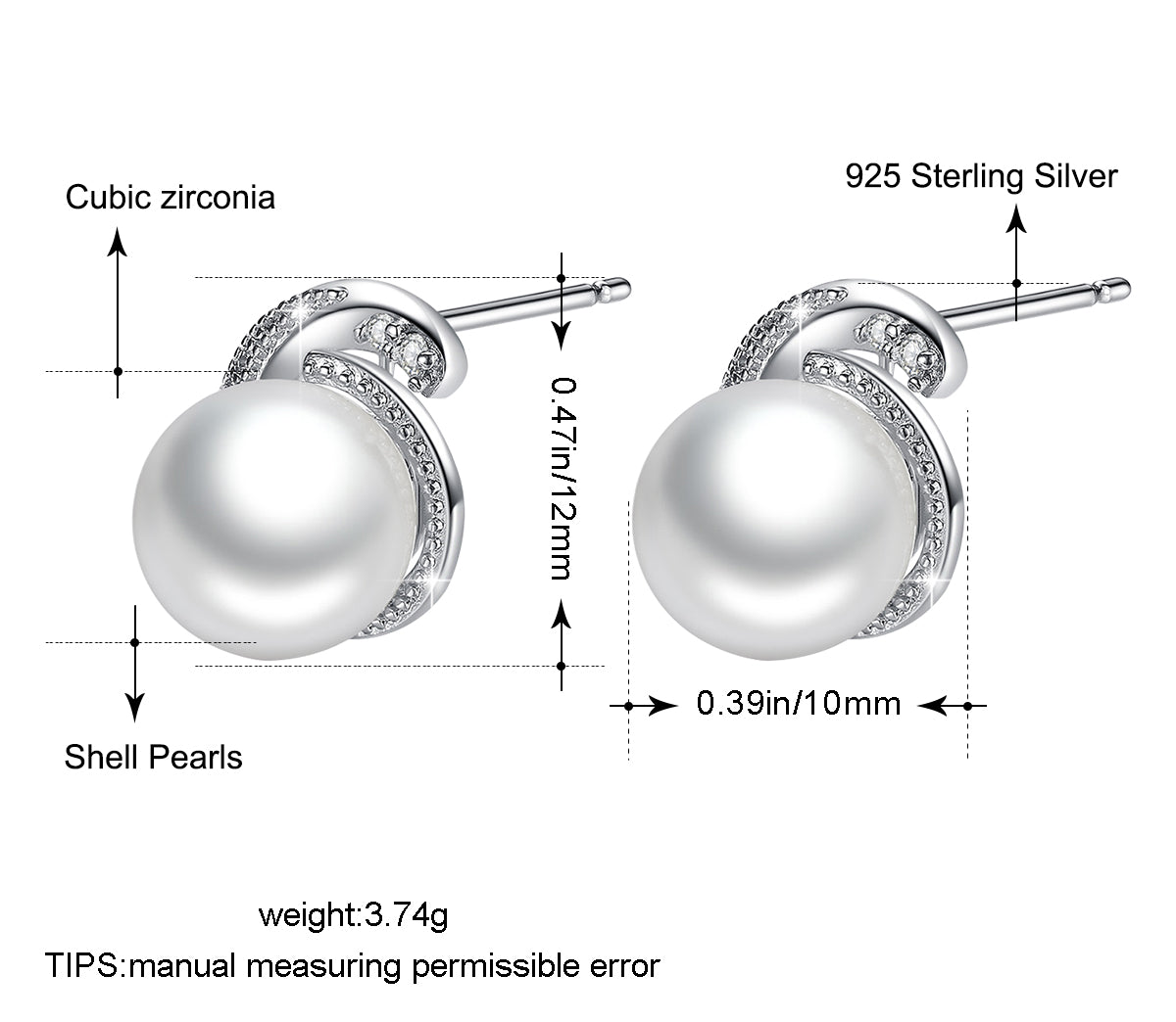 • ❤ Material❤ White Pearl+925 sterling silver + Cubic Zirconia.