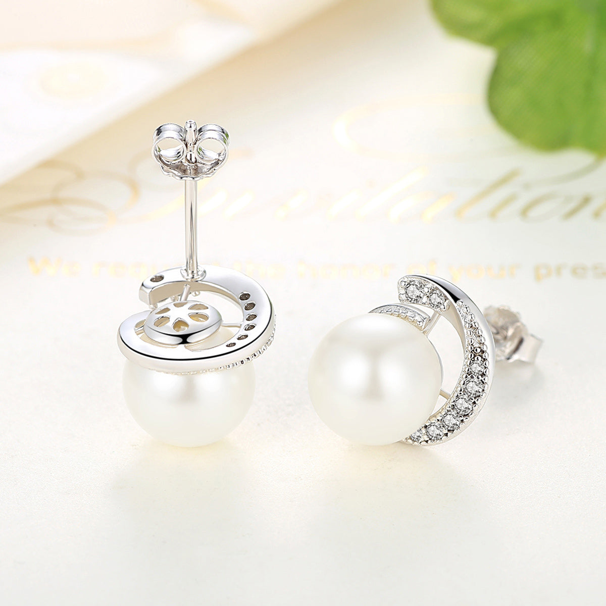 • ❤Design inspiration❤The stud earrings select a white pearl as main element, surrounded by sparkling zircon,Symbolizes being protected. Classy and elegant design.This pearl earrings for women girls making your personality more versatile and attractive
